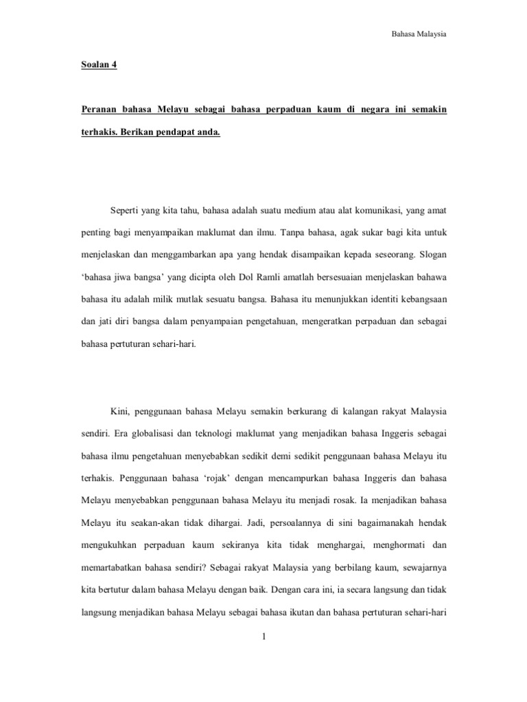 Dalam menghadapi soalan-soalan penulisan karangan Bahasa Melayu. Yang indah bernama bahasa. Hal inilah yang menyebabkan semua kaum di Malaysia dapat.